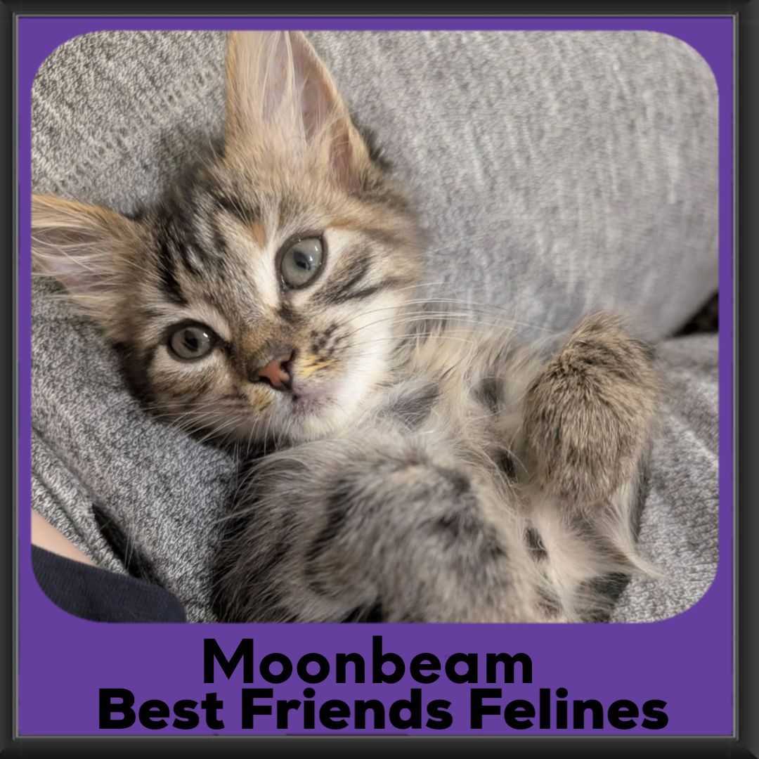 Moonbeam is a sweet little kitty who’s been bottle raised in care.