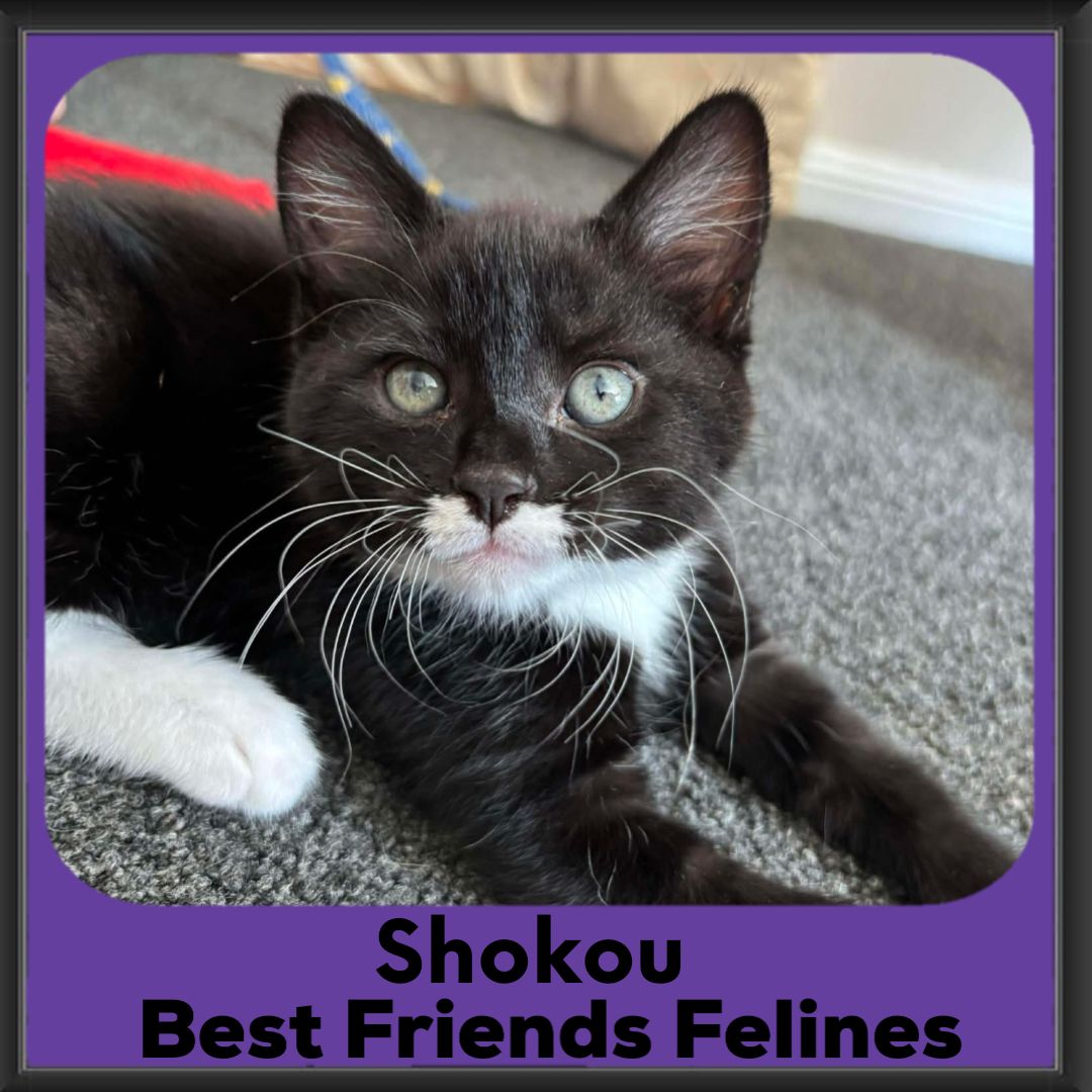 Shokou is a confident petite little girl with a super soft beautiful coat which is mostly black with some white.