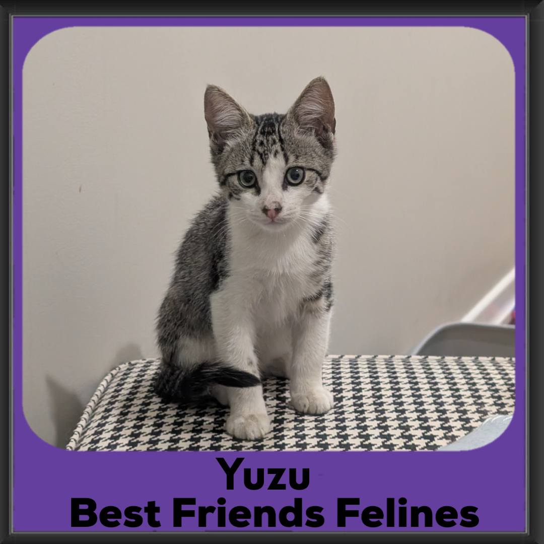 Yuzu is a sweet gentle kitten looking for a patient home to keep bringing him out of his shell.
